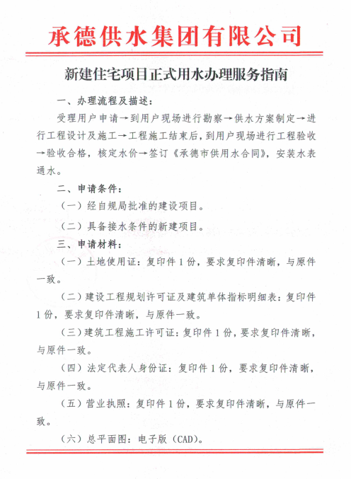 新建住宅項(xiàng)目正式用水辦理服務(wù)指南
