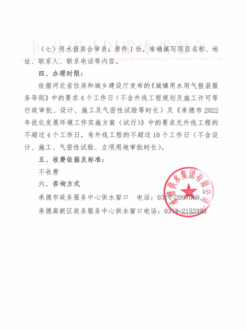 信息來源:承德供水